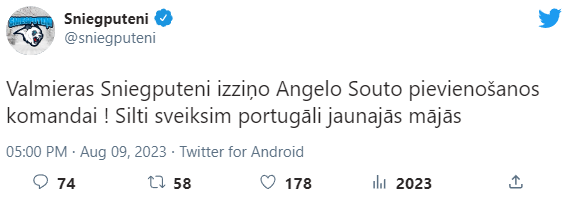 Sniegputeņi izziņo par jauna spēlētāja iegādi. Angelo Souto personā. Viņš komandai pievienosies sestdienas spēlē pret BC Jelgavas Hill vienību.