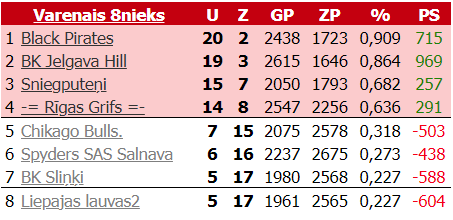 Sezonai beidzoties no šī varenā astotnieka finālā iekļuva Black Pirates, kur viņiem divās spēlēs nācās atzīt Lielā astotnieka spēcīgākās komandas BK Basket Bawlers pārrākumu.