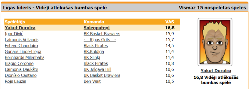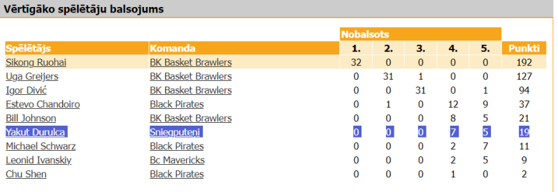Arī šajā turnīrā savas līdera dotības demonstrēja Yakut Durulca, kļūstot par rezultatīvāko vīru Sniegputeņu rindās, kā arī iekļūstot starp desmit labākajiem atlēkušo bumbu vācējiem pat šādā solīdā sabiedrībā, kādu piedāvāja Lyga turnīrs.