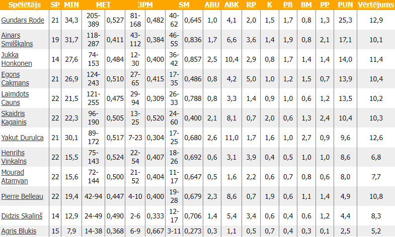 No četrpadsmit spēlēm tikai trīs varēja uzskatīt par uzvaramām, vienā no tām tika piedzīvots zaudējums pašā spēles galotnē. Lai arī zaudējumi krājās Rīgas Dinamo tempā, spēlētāji nenokāra galvas un devās laukumā, uz parketa atstājot litriem sviedru. Gundars Rode pārliecinoši bija rezultatīvākais spēlētājs šajā līgā, otro vietu apsteidzot par vairāk kā desmit punktiem. Varbūt smagajos piektdienas vakaros tika atstāta spēka drumstala kādai papildus uzvarai līgas spēlēs. To nekad neuzzināsim un priecāsimies par viņa sasniegumu šajā lauvu bedrē, kādā reiz nokļuvām.